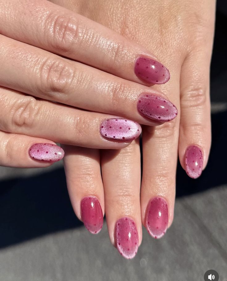 Hot pink cat eye nails are such a confidence boost. The magnetic shimmer gives that signature pink cat eye effect that moves in the light, making them impossible to ignore. If you love dramatic but stylish nails, pink cat eye nails are a must-try.